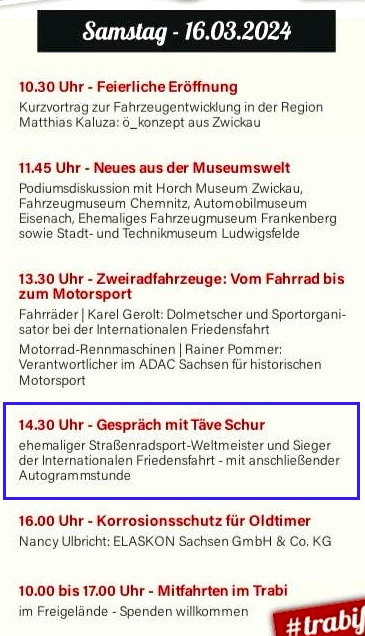 am 16. und 17. März 2024 in Chemnitz ist schon gewaltig. Dieses Dreier-Team nahm mit dem Friedensfahrt-Trabi