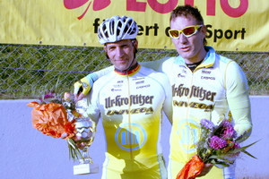 Sieger des Rennens wurde Uwe Kalz und Toralf Baumgarten wurde Dritter, für beide ein erfreuliches Ergebnis - der erneute Sieg blieb wiederum beim erfolgsgewohnten Team Master Ur-Krostritzer Univega ![]() ... den auch Toralf Baumgarten (mit der Startnummer 1) sicher gewinnt