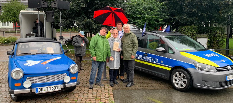 am 16. und 17. März 2024 in Chemnitz ist schon gewaltig. Dieses Dreier-Team nahm mit dem Friedensfahrt-Trabi