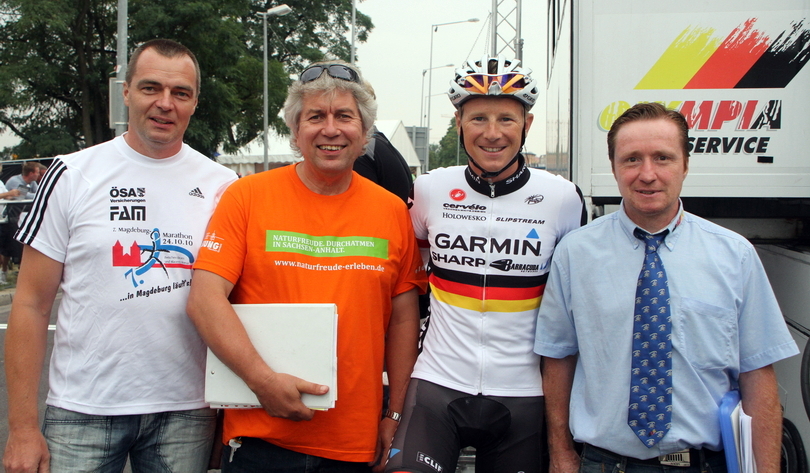 und die Magdeburger Radsportlegende Stephan Gottschling [von links nach rechts].