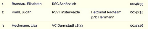 Bei den Cyclocross-Meisterschaften sicherte sich Marcel Meisen (RC Zugvogel Aachen) seinen neunten Titel bei seiner vermutlich letzten DM-Teilnahme, während Elisabeth Brandau (RSC Schönaich) ebenfalls erfolgreich ihr Meistertrikot bei den Frauen verteidigte.