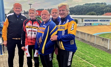 Karel (1.v.r.) ist mit der Radrennbahn in Heidenau seit den 1980-Jahren eng verbunden und ist langjähriges Mitglied beim SSV Heidenau. |