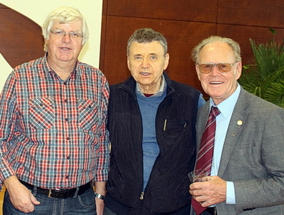 Bernd Gohr (links) zusammen mit Täve Schur (rechts) beim Radrennertreffen "Treff der Alten" 2016 in Leipzig. Mit dabei
