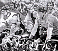 Foto links: Die Radrenner von Motor Mitte am Start in Wernigerode,