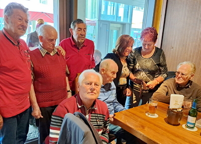Das war das "AUS" für ihn als Radrenner. Er hat das nie so richtig überwunden. Jetzt nutzt er jede Gelegenheit, mit seinen "alten" Sportskameraden zusammen zu sein. |