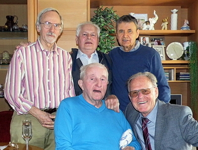 Rüdiger zusammen mit Dr. Wolfgang Arendt, Dr. Reinhard Buchheim und Gustav Adolf Schur (Täve) beim 80. Geburtstag vom Friedensfahrtteilnehmer Johannes Schober. Täve Schur war mehrmalig Johannes Mannschaftskapitän bei der legendären Fahrt für den Frieden, die durch die drei damalig eng befreundeten Länder DDR, Polen und CSSR ging. |
