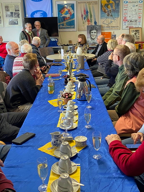 Aus nah und fern waren rund 35 Freunde ins Friedensfahrtmuseum gekommen, um mit Täve Schur seinen 92. Geburtstag zu feiern.