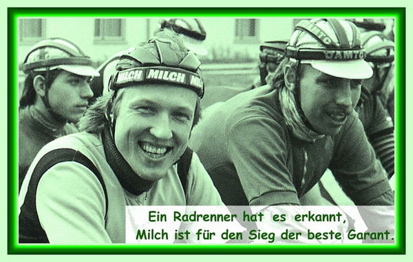 Der Radrenner mit der SUPER-Sturzkappe "MILCH" war Heinz-Gerhard Zöffzig, der heute Geschäftsführer der Firma "Drucklufttechnik & Hydrauliktechnik-Zöffzig" in Magdeburg ist.