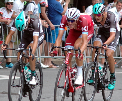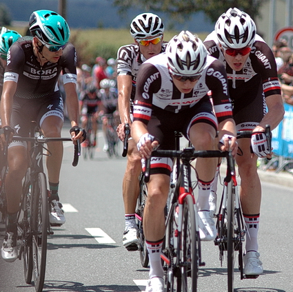 Emanuel Buchmann (links) hatte die "Sunweb-Leute" immer im Blick, um ihre Attacken zu egalisieren. Hinter Emanuel fuhr das spätere Sieger des Rennens Marcus Burghardt (verdeckt).