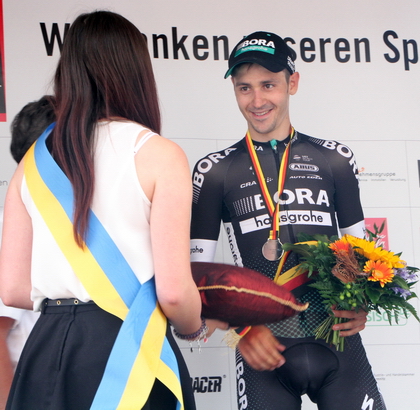 Hier ging es in die letzte Runde. Emanuel Buchmann (links) fuhr ein taktisch erstklassiges Rennen, dass zum Doppelerfolg von "BORA hansgrohe" führte. In der Bildmitte ist Nils Politt (Team Katuscha Alpecin) zu sehen, der hinter "Dege" Platz 4 belegte.