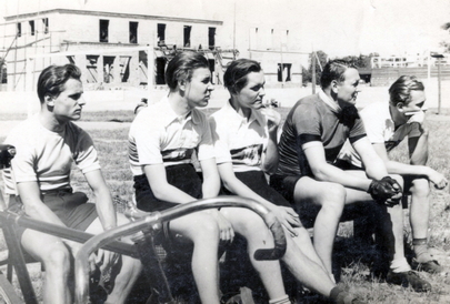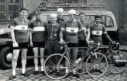 In der ersten Phase seines radsportlichen Lebens war Richard aktiver Radrennfahrer. Er begann mit 15 Jahren mit dem Radsport bei Turbine Magdeburg. Richard ist im linken Bild als 2.v.l. und im rechten Bild als 1.v.r. zu sehen. Seine damaligen Radler-Kollegen waren: H. Schur, K. Erhardt, G. Zöffzig, D. Zimmer und D. Matte. |